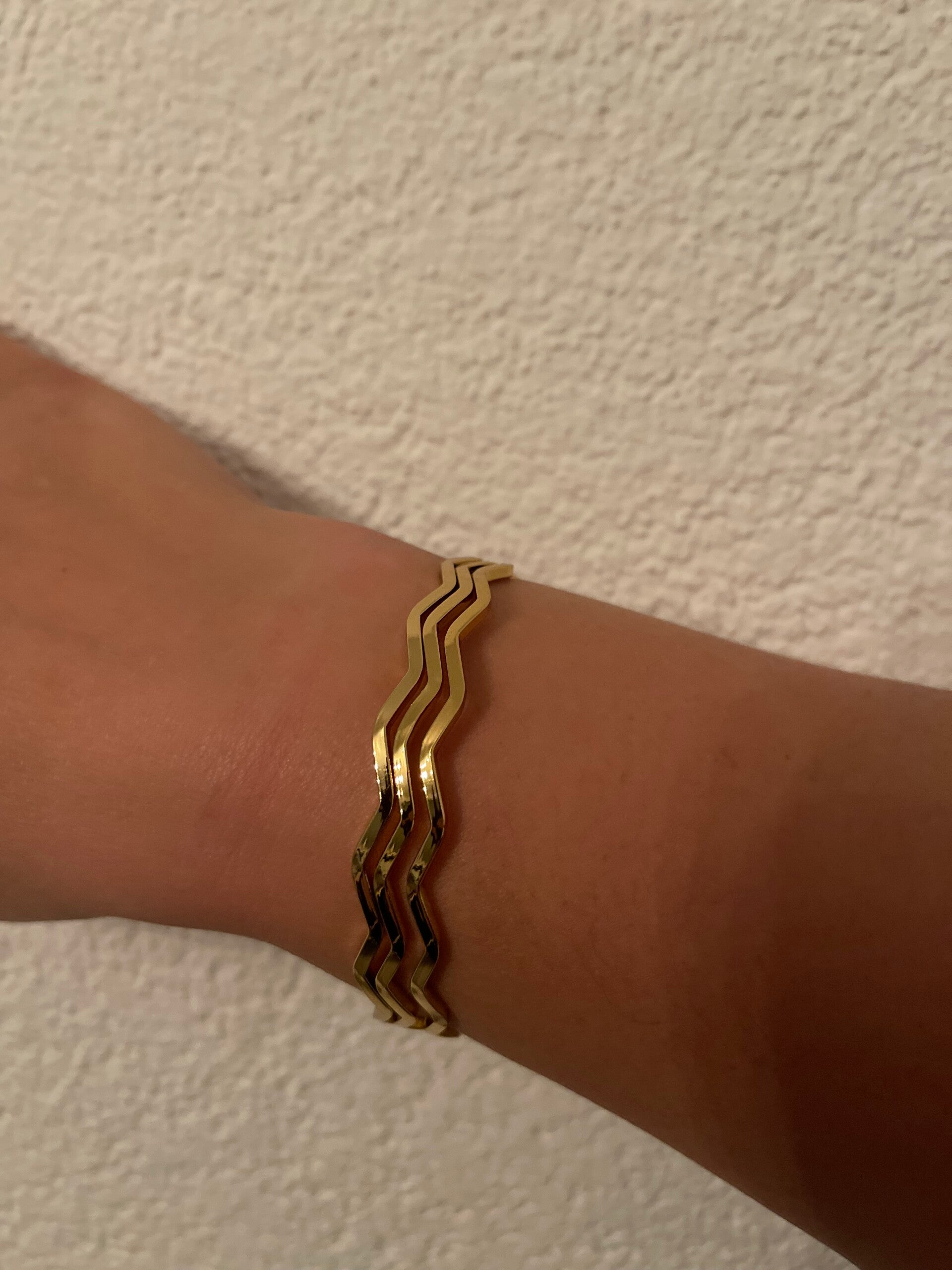 3 zigzag bangles. Stainless steel. Goud.