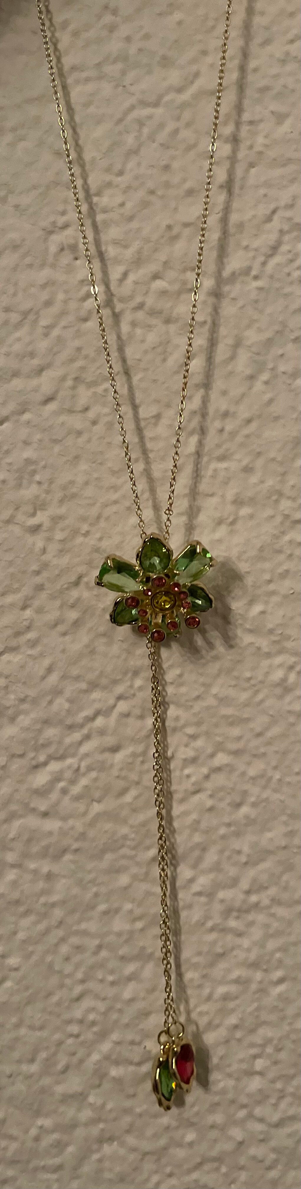 Goud, groen strass, stainless steel y-ketting