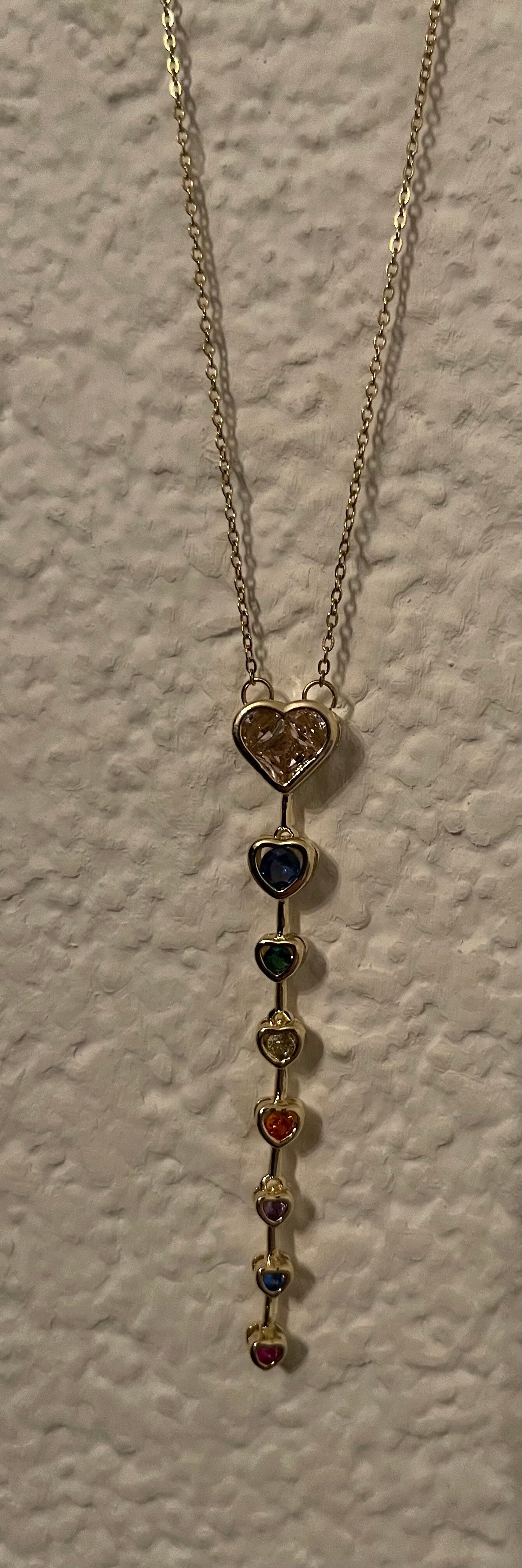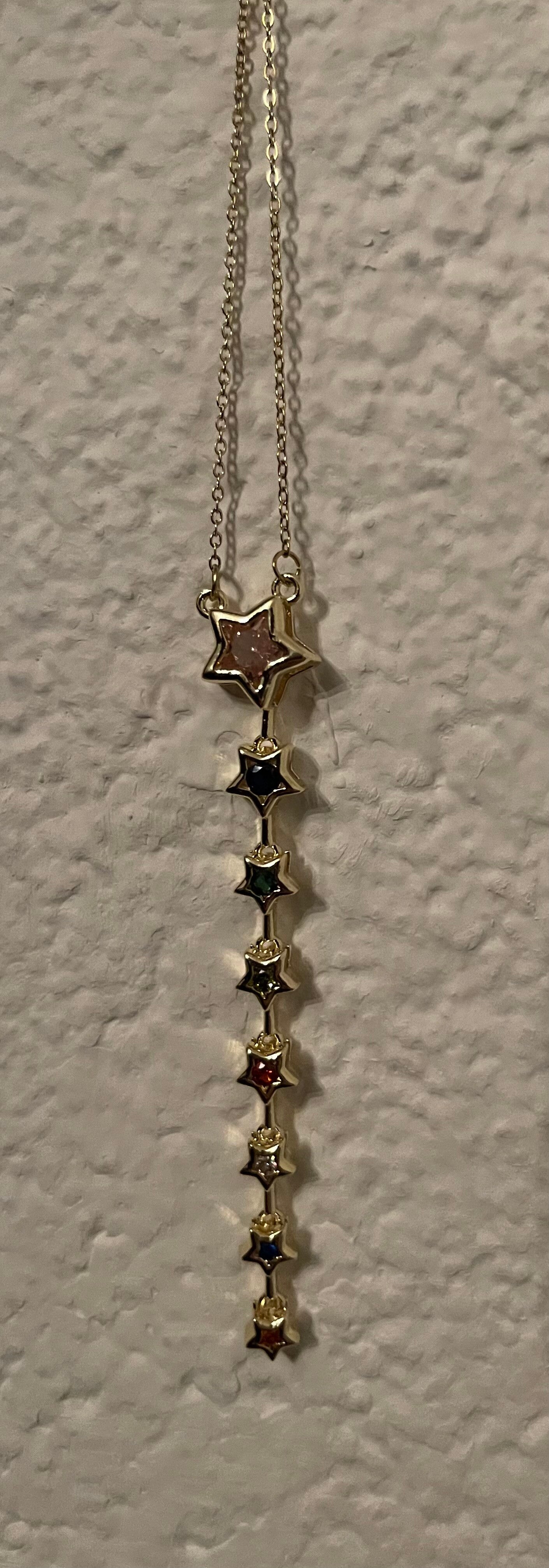Sterretjes of hartjes y-ketting, stainless steel, goud met gekleurde strass.