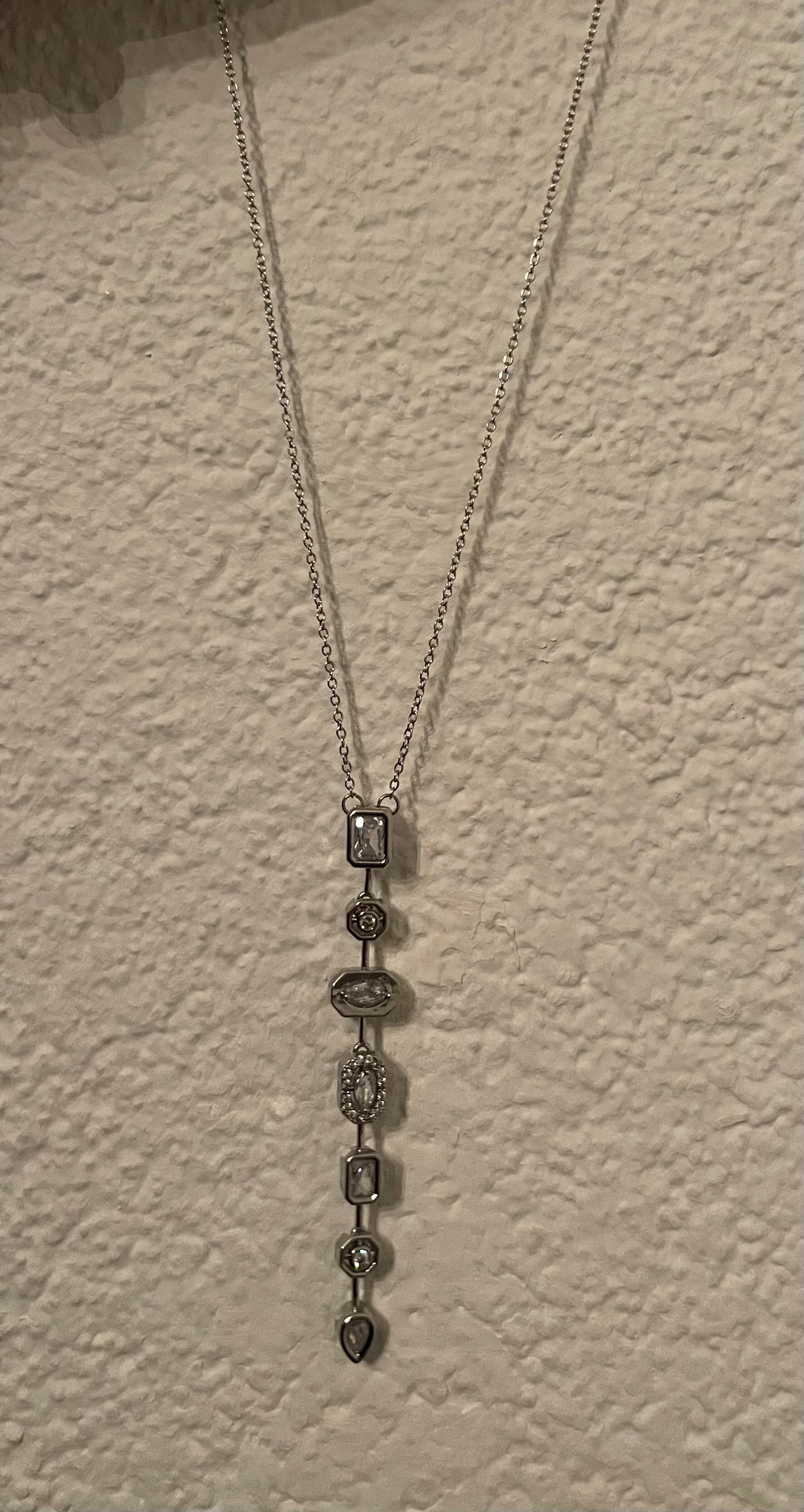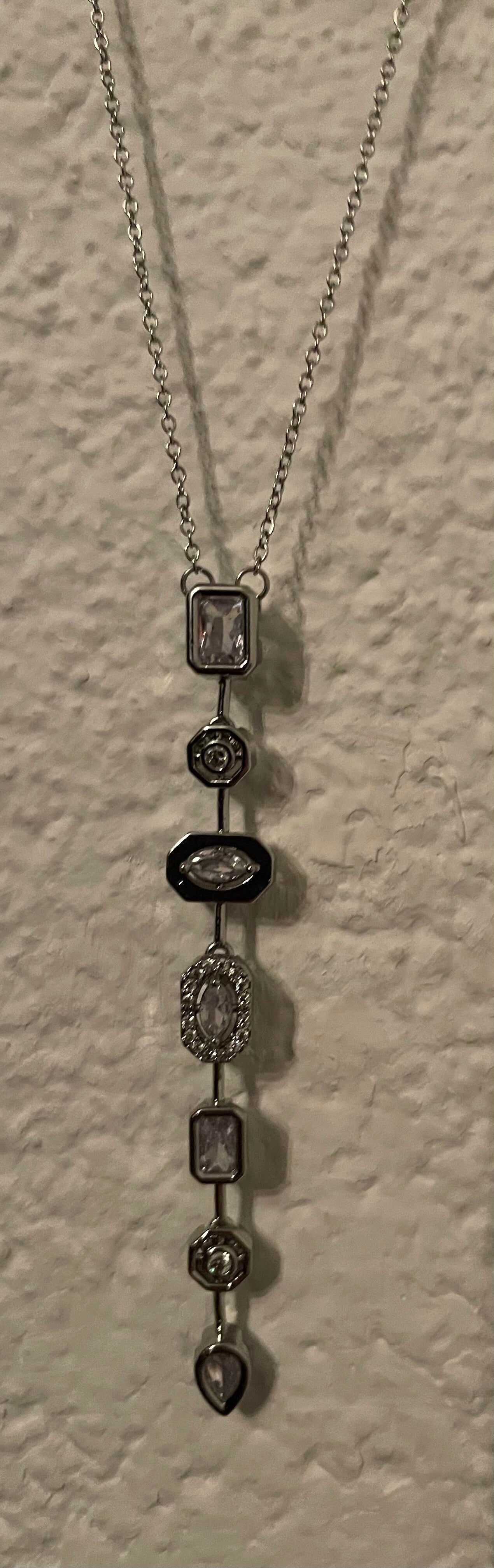 Y-ketting met roze en transparante strass & goud. Y-ketting met transparante strass & goud. Y-ketting met transparante strass & zilver.
